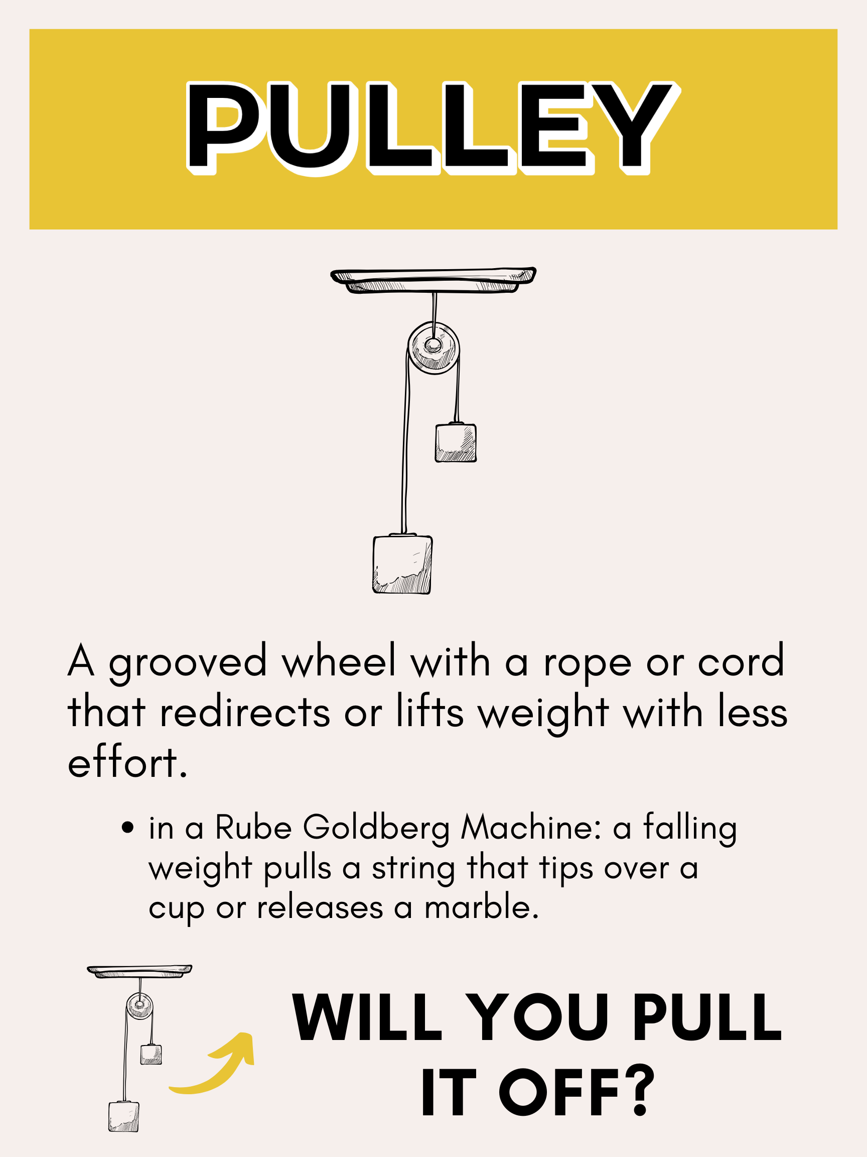 • Pulleys & Perseverance – Complex challenges require effort, patience, and perseverance.